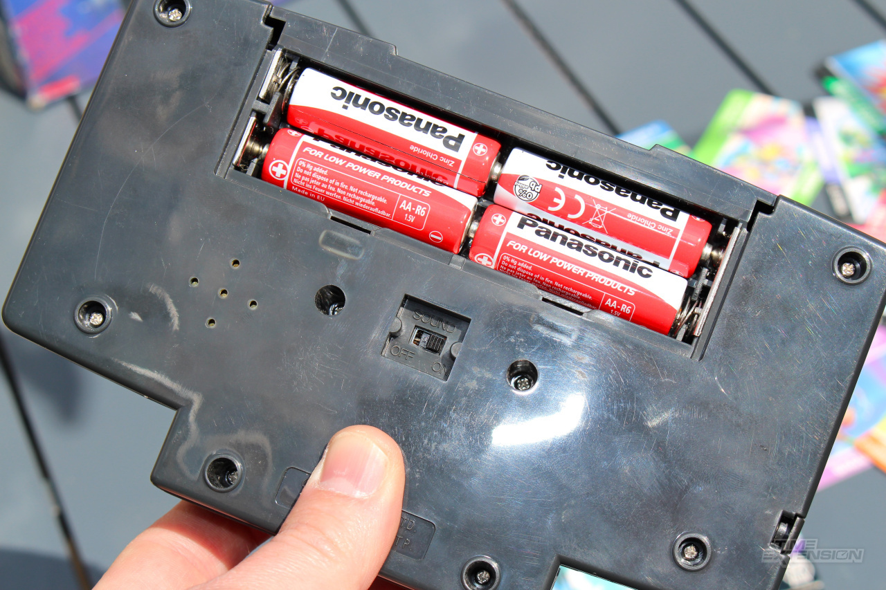 Hilariously, the unit in the photos you see on this page was intended for sale in Germany, but at some point, Tomy must have decided to dump stock elsewhere in Europe as it includes an English user manual and sheets of stickers, which British players were expected to painstakingly apply to all of the bundled cards (also in German) so they could actually make sense of them.